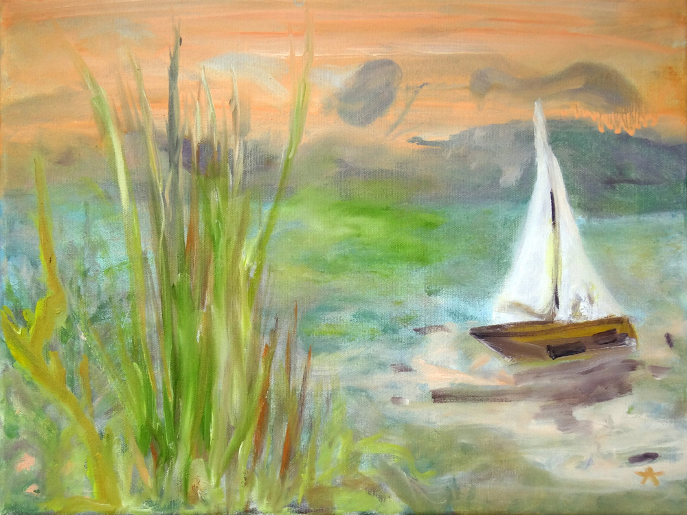 Wo der Rhein den Bodensee verlässt 50x70 cm Öl