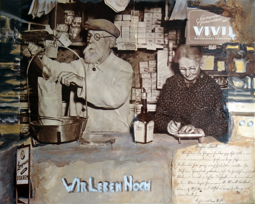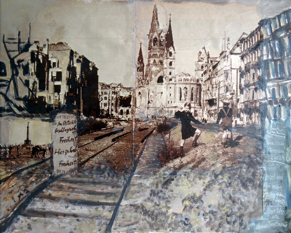 Nie wieder Krieg 40x50 cm Collage Acryl